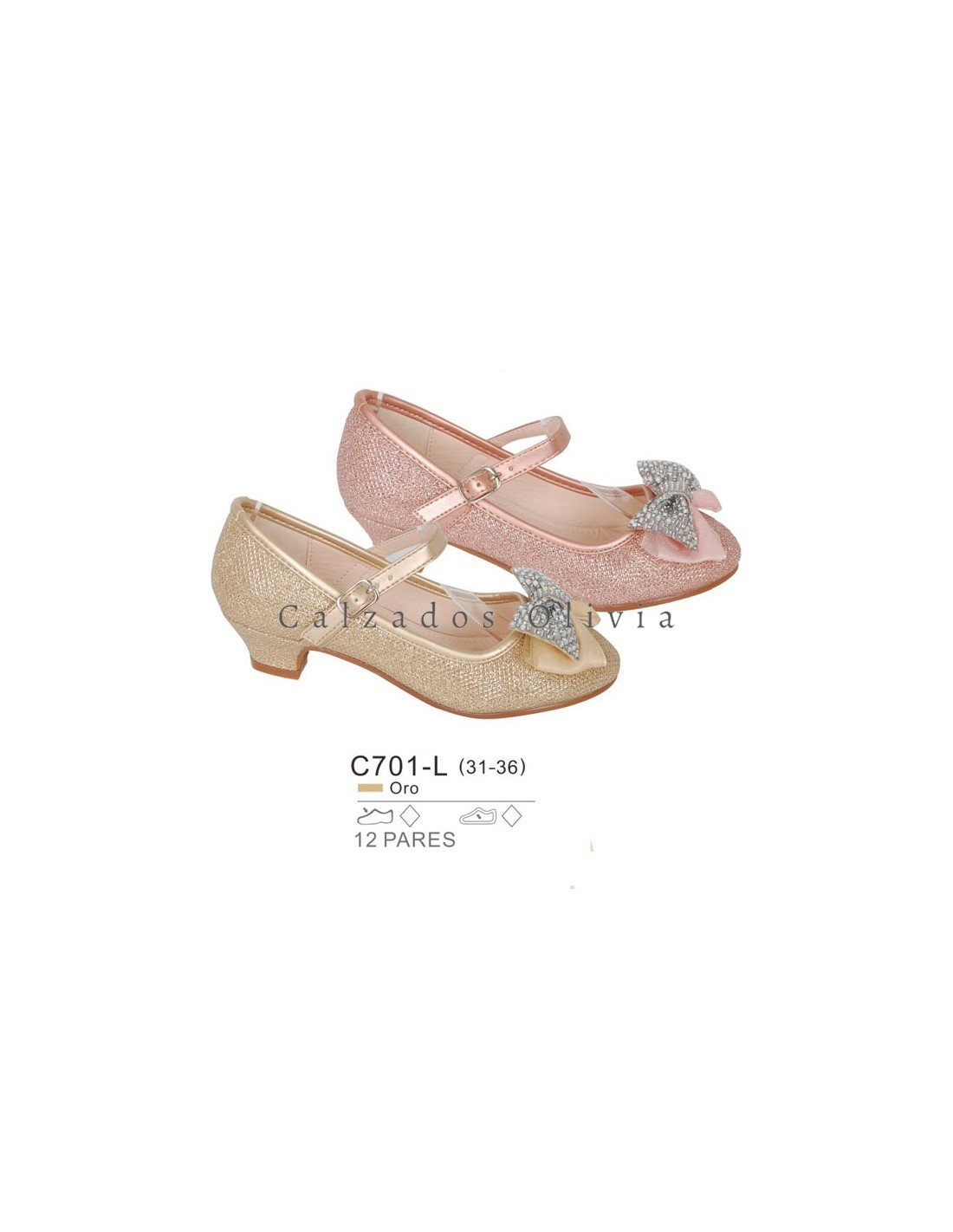 Detalles del modelo de zapatos PP-C701-L (31-36) cada lote contiene 12 pares de zapatos (no modificable).