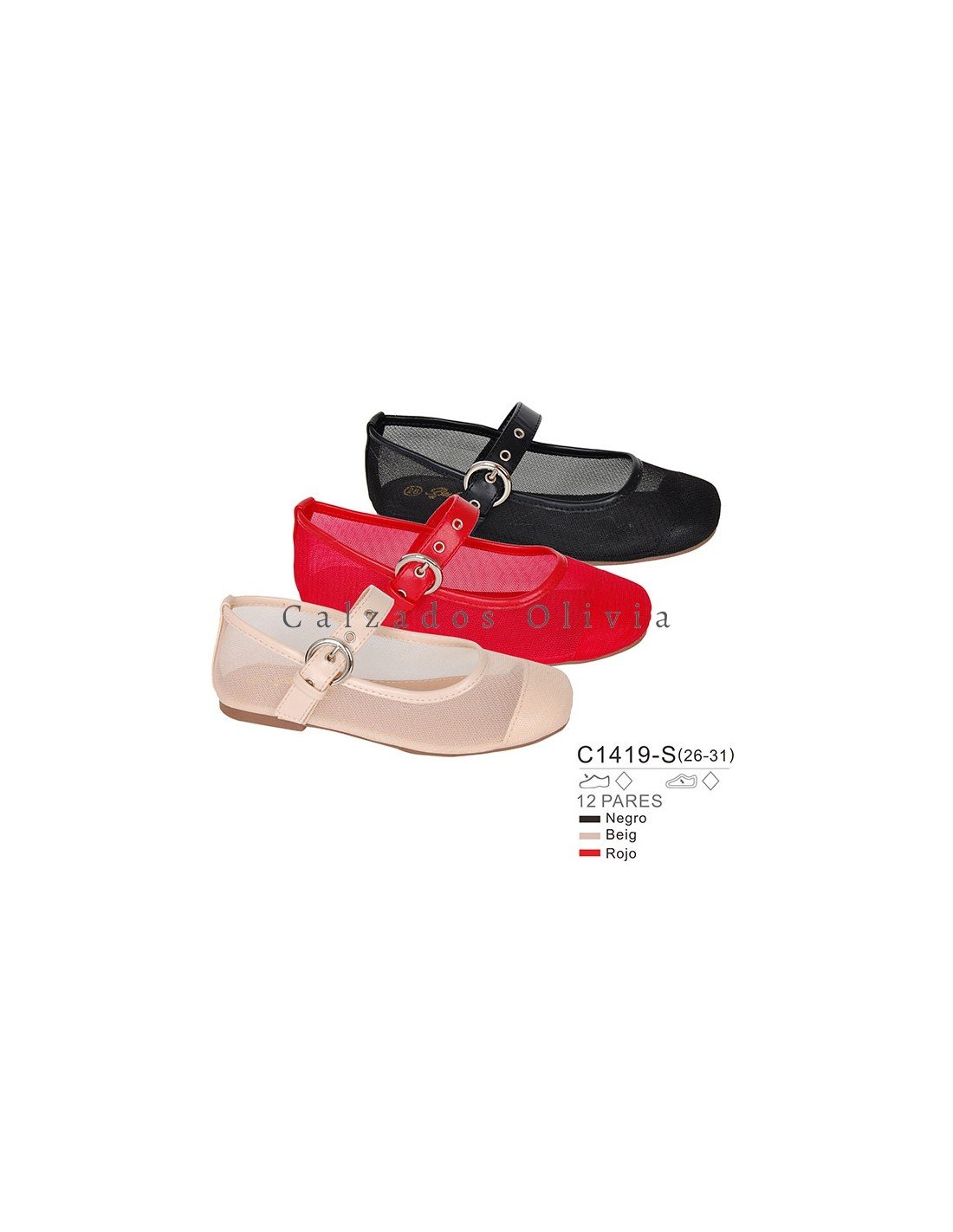 Detalles del modelo de zapatos PP-C1419-S (26-31) cada lote contiene 12 pares de zapatos (no modificable).