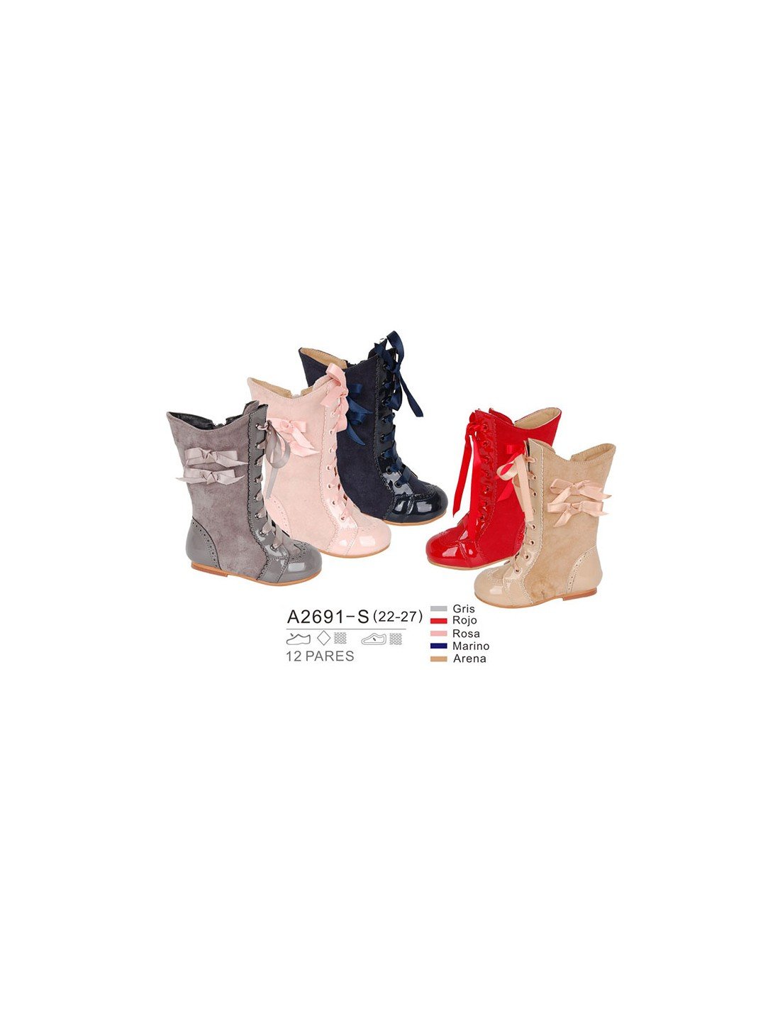Detalles del modelo de zapatos    PP-A2691-S (22-27)  cada lote contiene 12 pares de zapatos (no modificable).