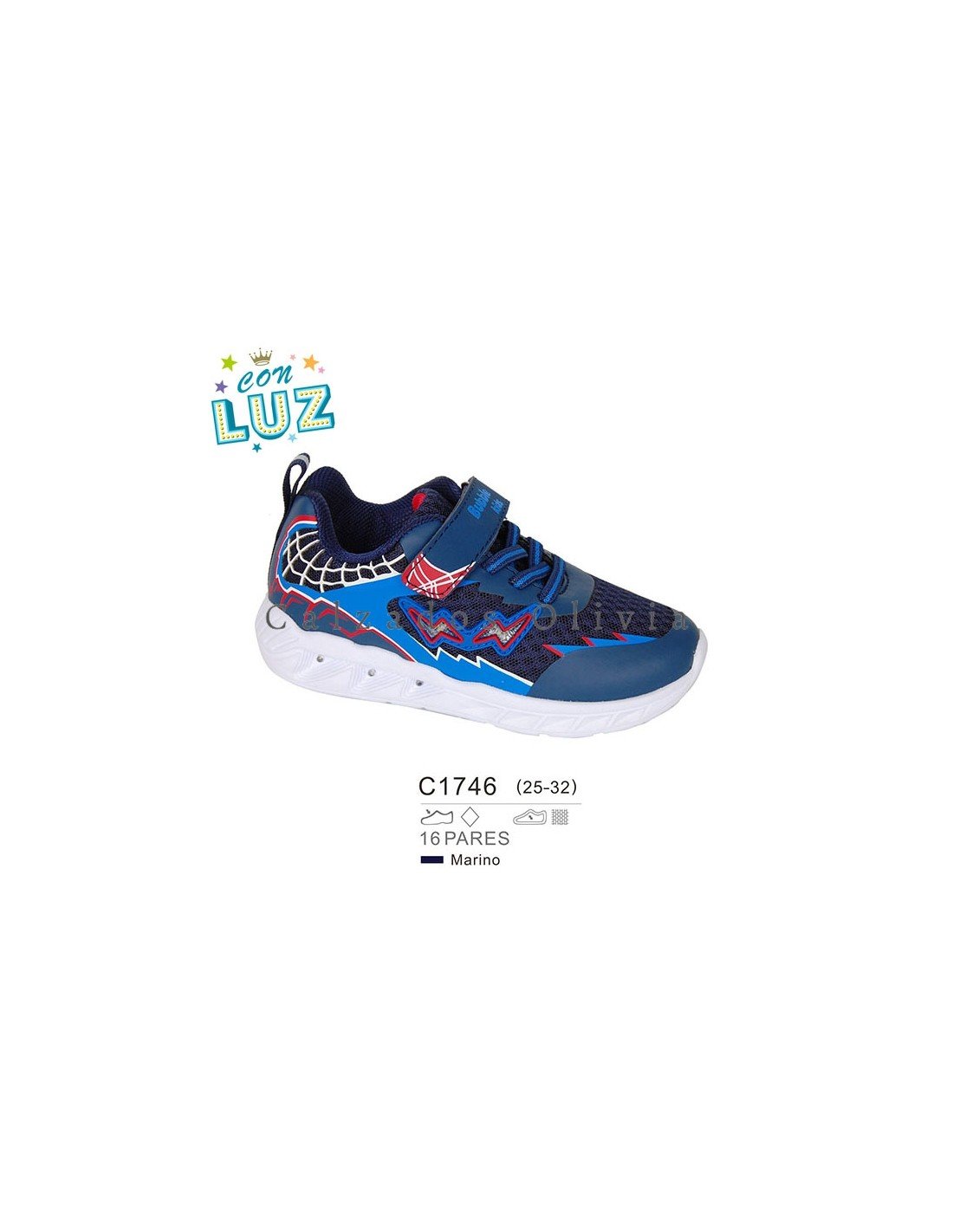 Detalles del modelo de zapatos PP-C1746 (25-32) cada lote contiene 16 pares de zapatos (no modificable).