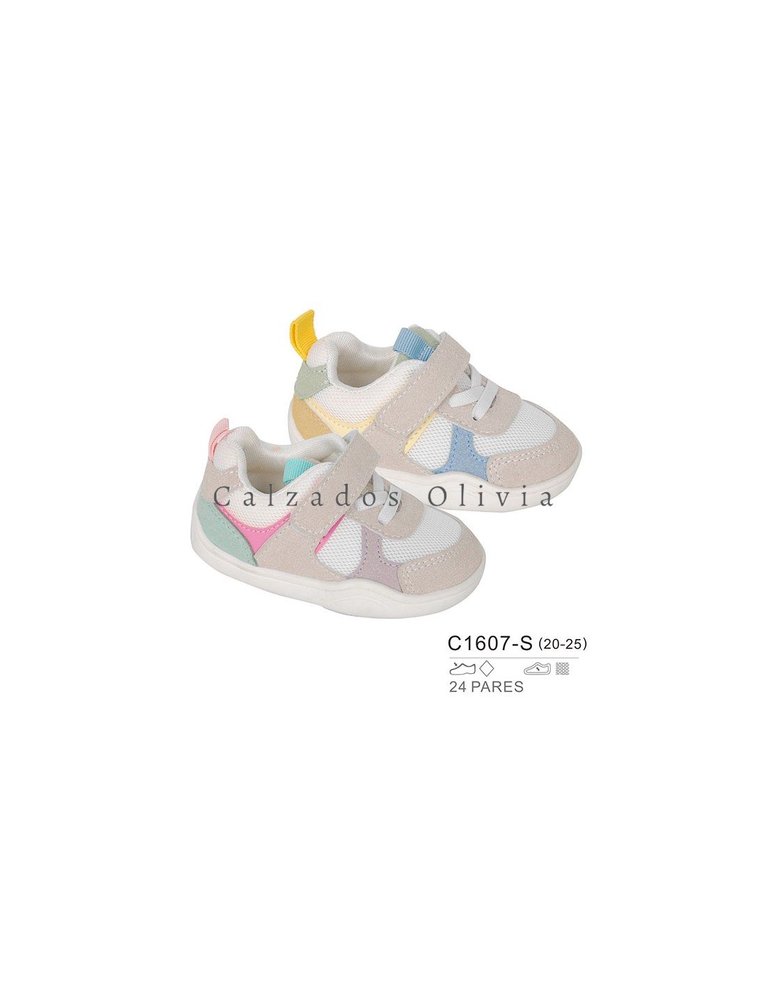 Detalles del modelo de zapatos PP-C1607-S (20-25) cada lote contiene 24 pares de zapatos (no modificable).