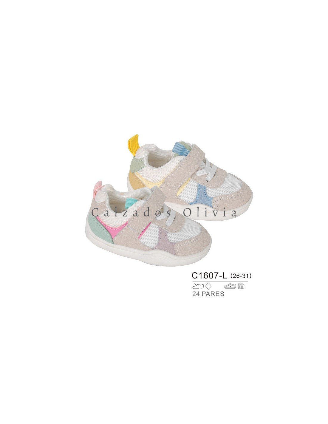 Detalles del modelo de zapatos PP-C1607-L (28-31) cada lote contiene 24 pares de zapatos (no modificable).