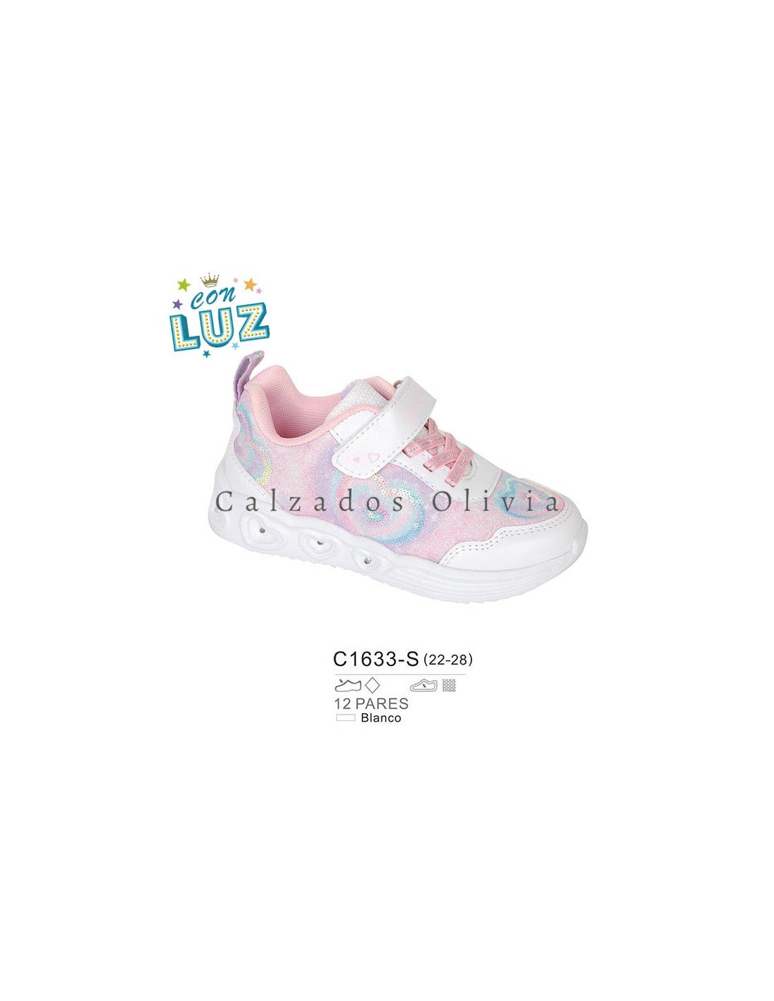 Detalles del modelo de zapatos PP-C1633-S (22-28) cada lote contiene 12 pares de zapatos (no modificable).