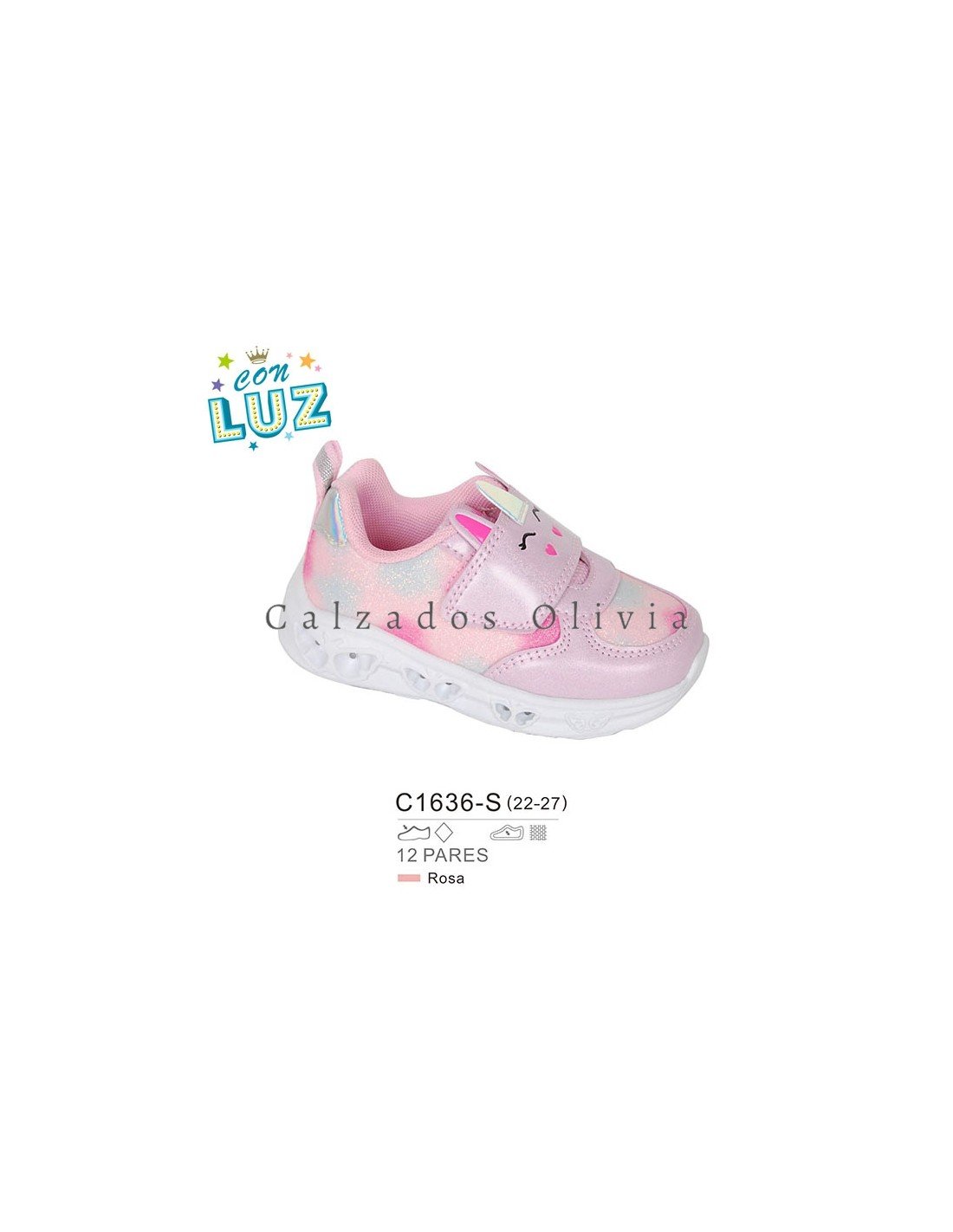 Detalles del modelo de zapatos PP-C1636-S (22-27) cada lote contiene 12 pares de zapatos (no modificable).