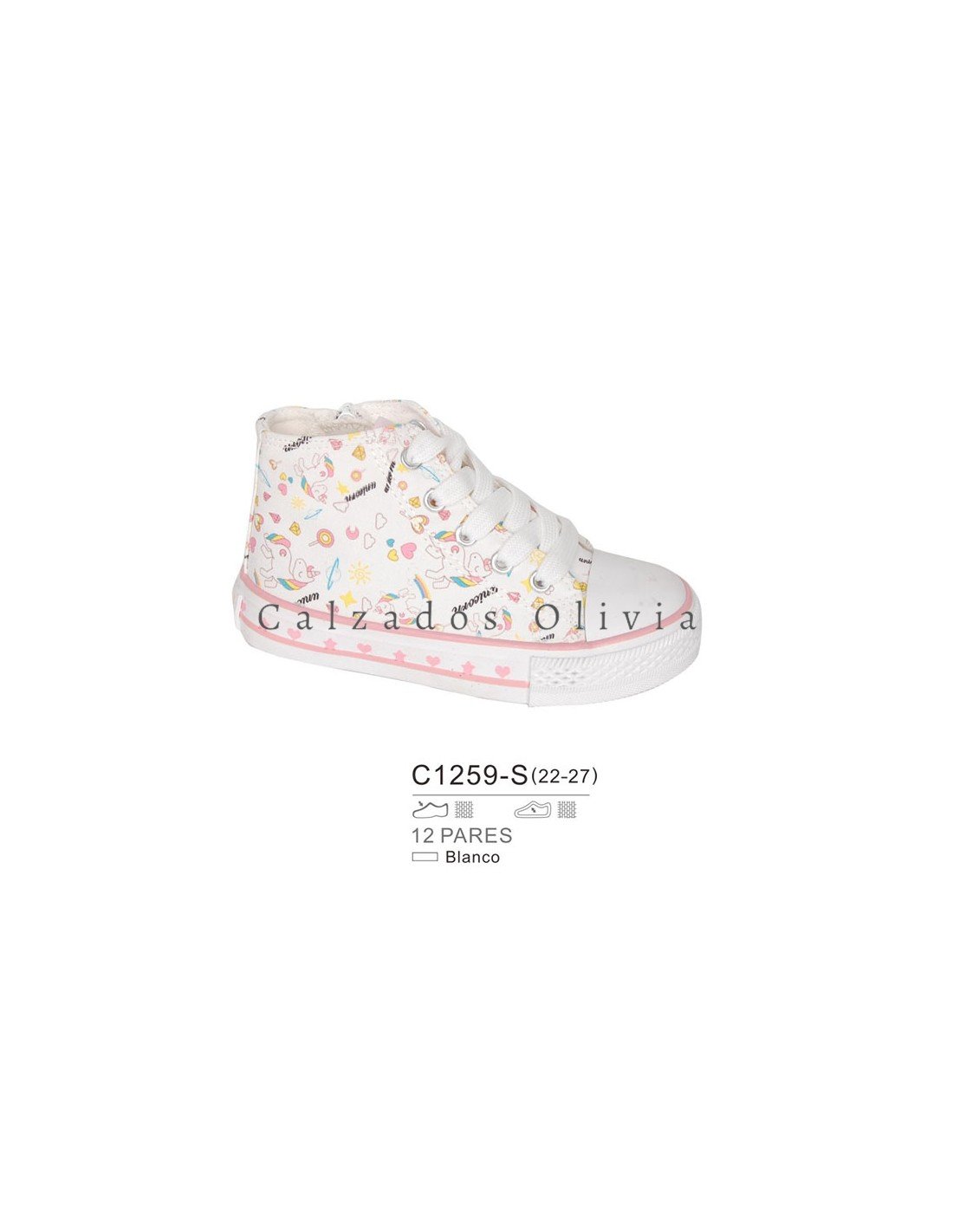 Detalles del modelo de zapatos PP-C1259-S (22-27) cada lote contiene 12 pares de zapatos (no modificable).