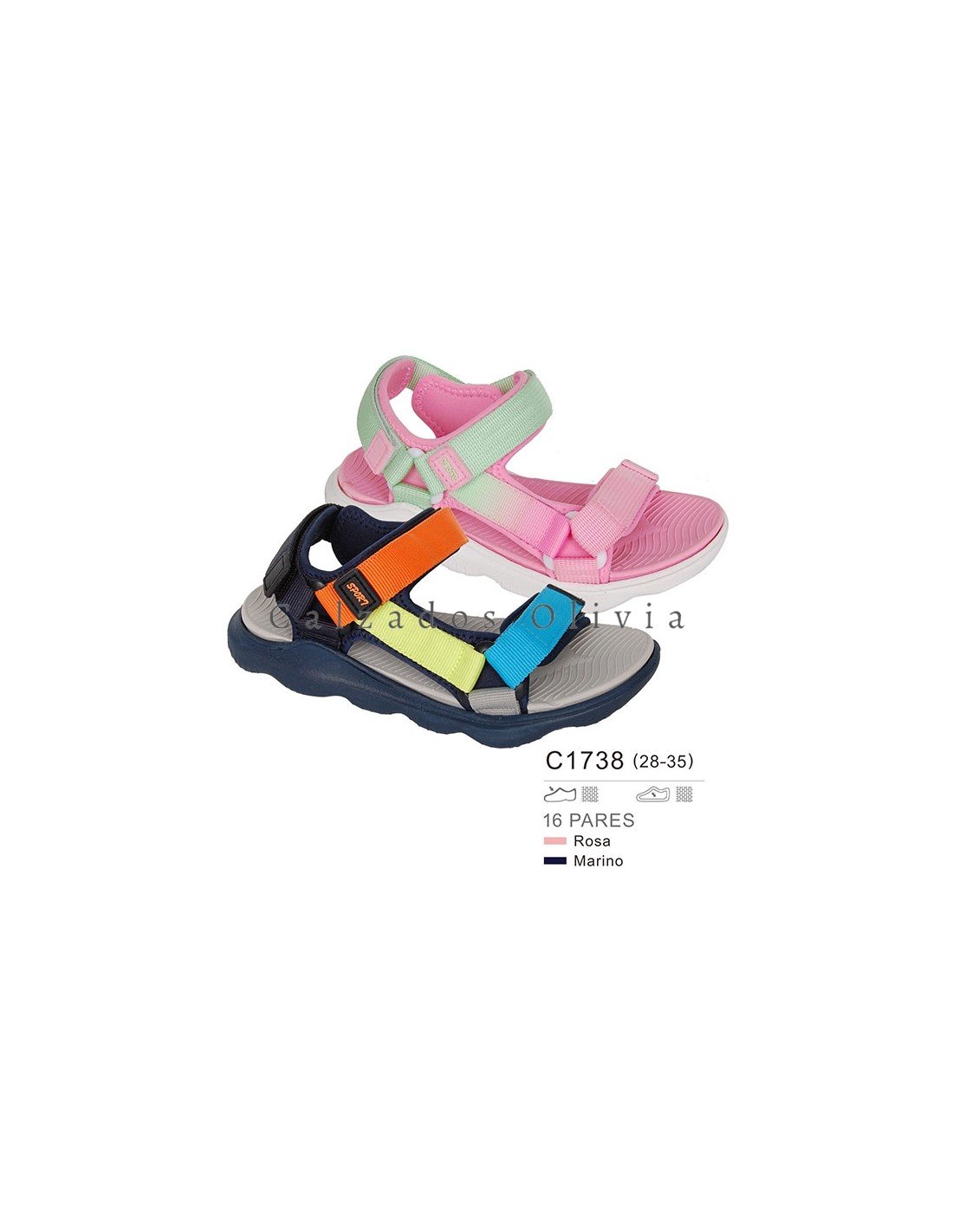 Detalles del modelo de zapatos PP-C1738 (28-35) cada lote contiene 16 pares de zapatos (no modificable).
