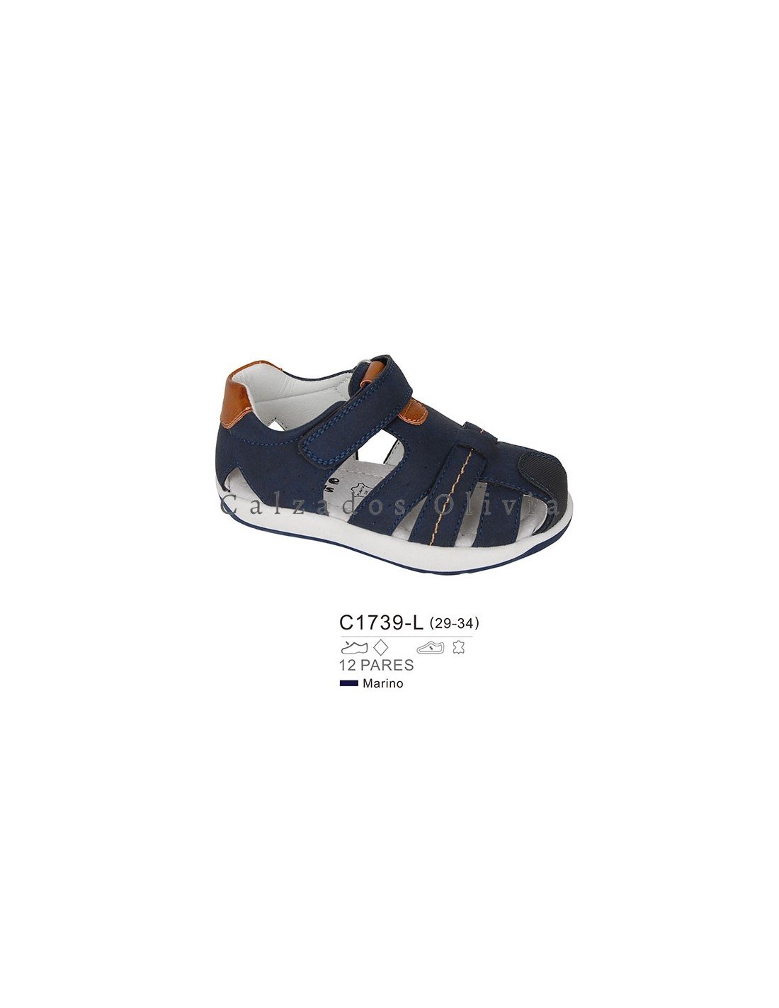 Detalles del modelo de zapatos PP-C1739-L (29-34) cada lote contiene 12 pares de zapatos (no modificable).