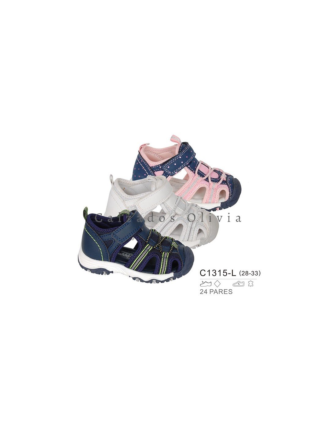 Detalles del modelo de zapatos PP-C1315-L (28-33) cada lote contiene 24 pares de zapatos (no modificable).
