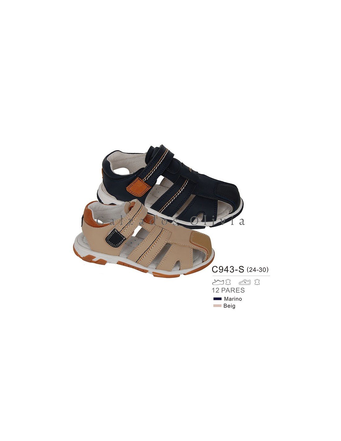 Detalles del modelo de zapatos PP-C943-S (24-30) cada lote contiene 12 pares de zapatos (no modificable).