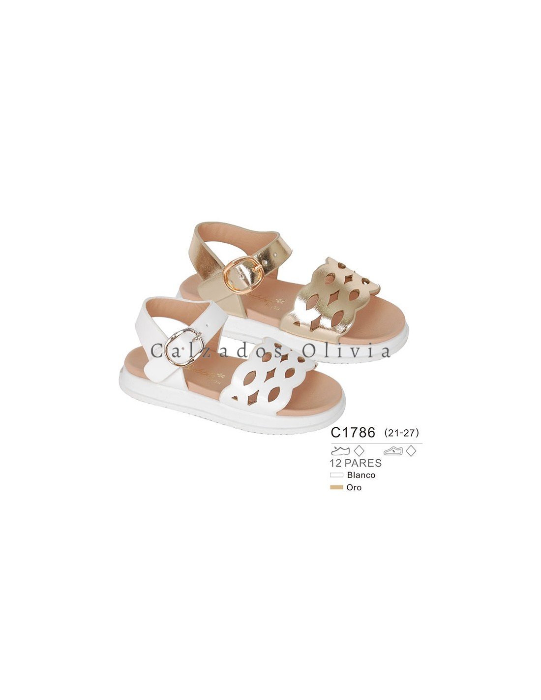 Detalles del modelo de zapatos PP-C1786 (21-27) cada lote contiene 12 pares de zapatos (no modificable).