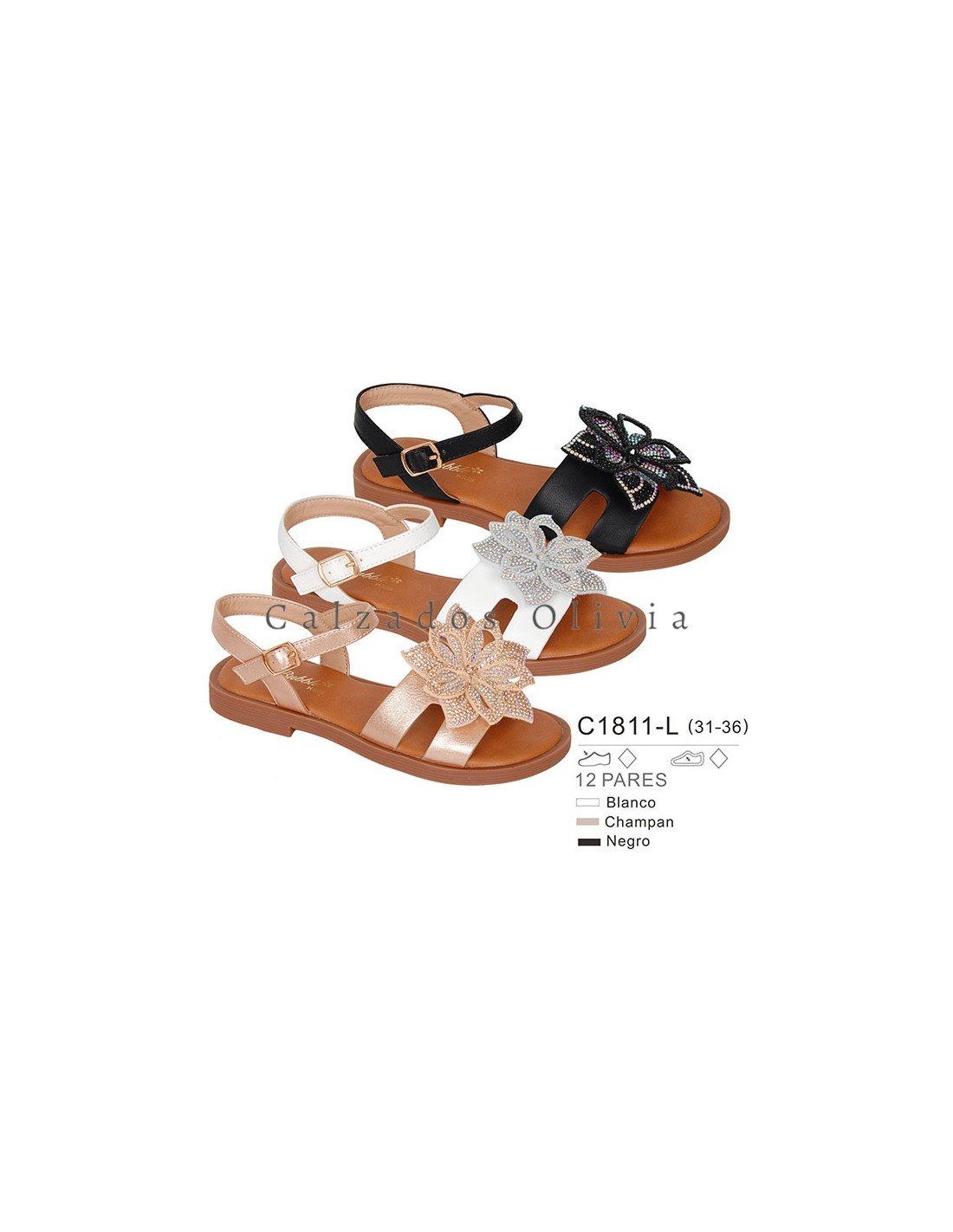 Detalles del modelo de zapatos PP-C1811-L (31-36) cada lote contiene 12 pares de zapatos (no modificable).