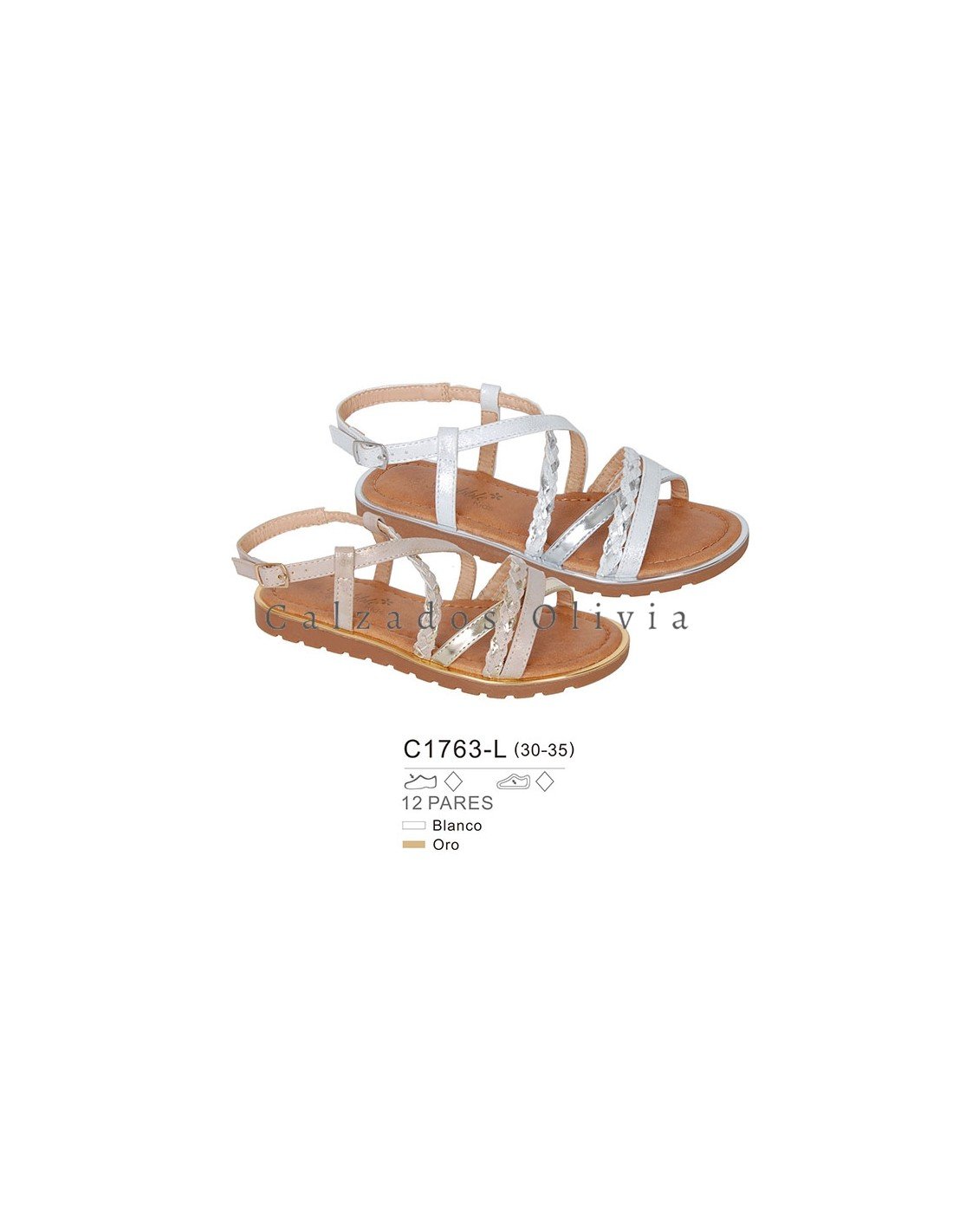 Detalles del modelo de zapatos PP-C1763-L (30-35) cada lote contiene 12 pares de zapatos (no modificable).