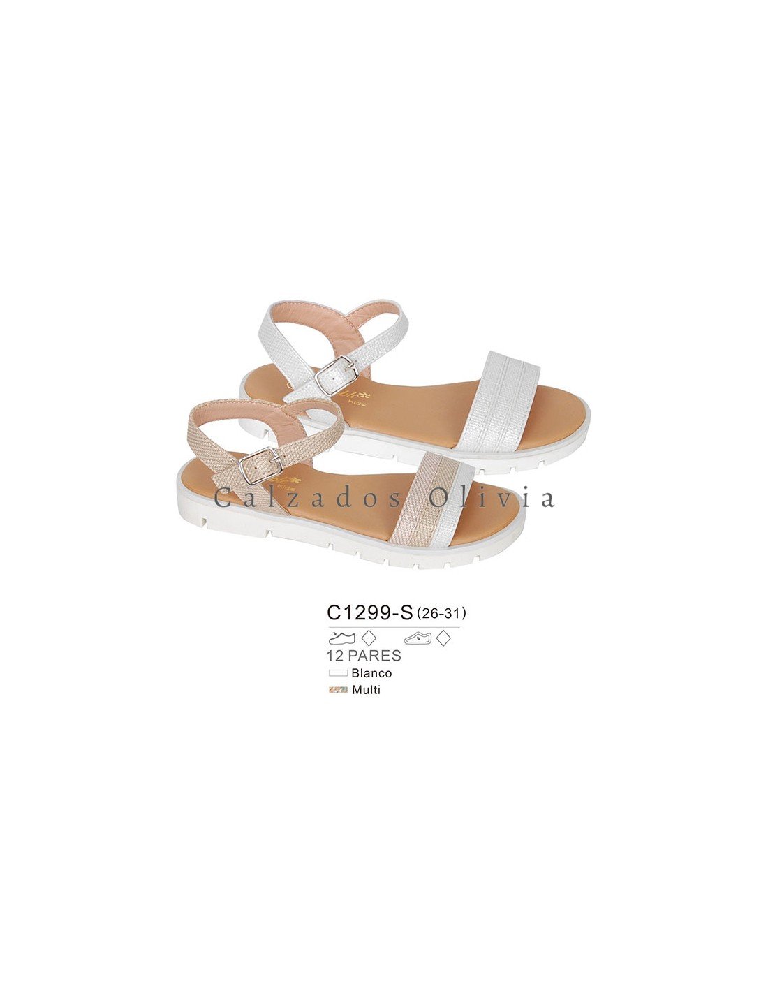 Detalles del modelo de zapatos PP-C1299-S (26-31) cada lote contiene 12 pares de zapatos (no modificable).