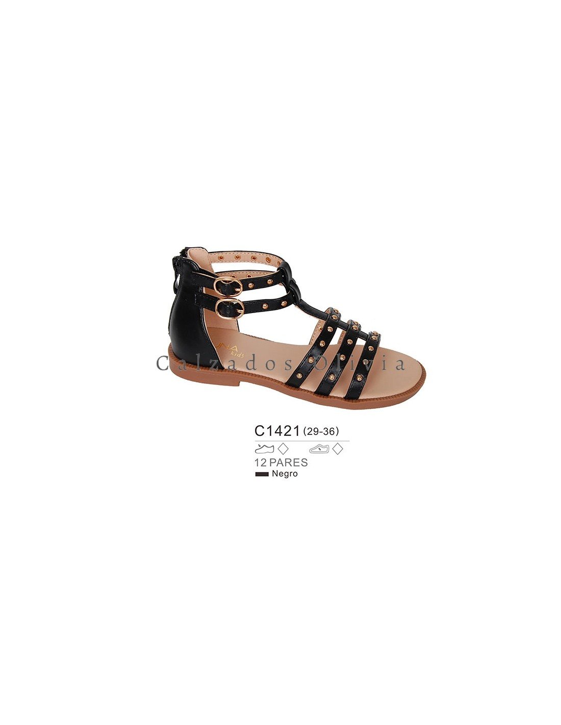Detalles del modelo de zapatos PP-C1421 (29-36) cada lote contiene 12 pares de zapatos (no modificable).