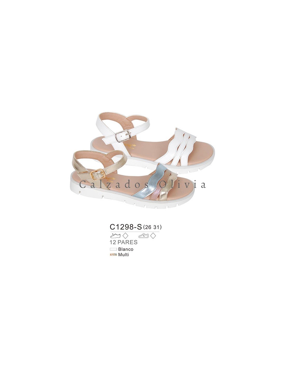 Detalles del modelo de zapatos PP-C1298-S (26-31) cada lote contiene 12 pares de zapatos (no modificable).