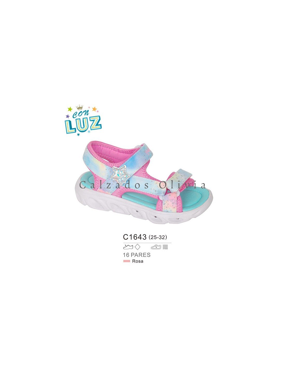 Detalles del modelo de zapatos PP-C1643 (25-32) cada lote contiene 16 pares de zapatos (no modificable).