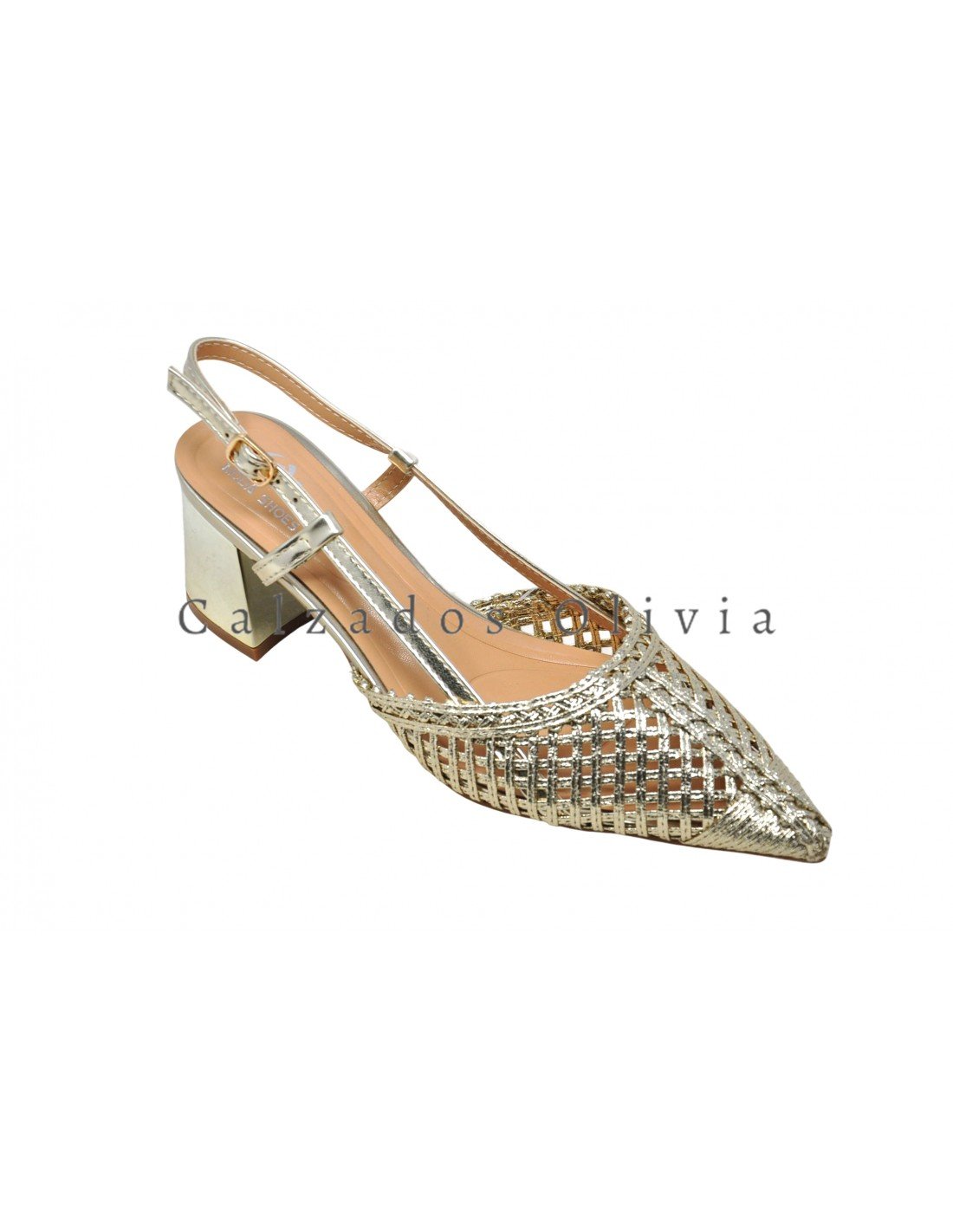 Detalles del modelo de zapatos TY-HLP25-05 GOLD cada lote contiene 12 pares de zapatos (no modificable).